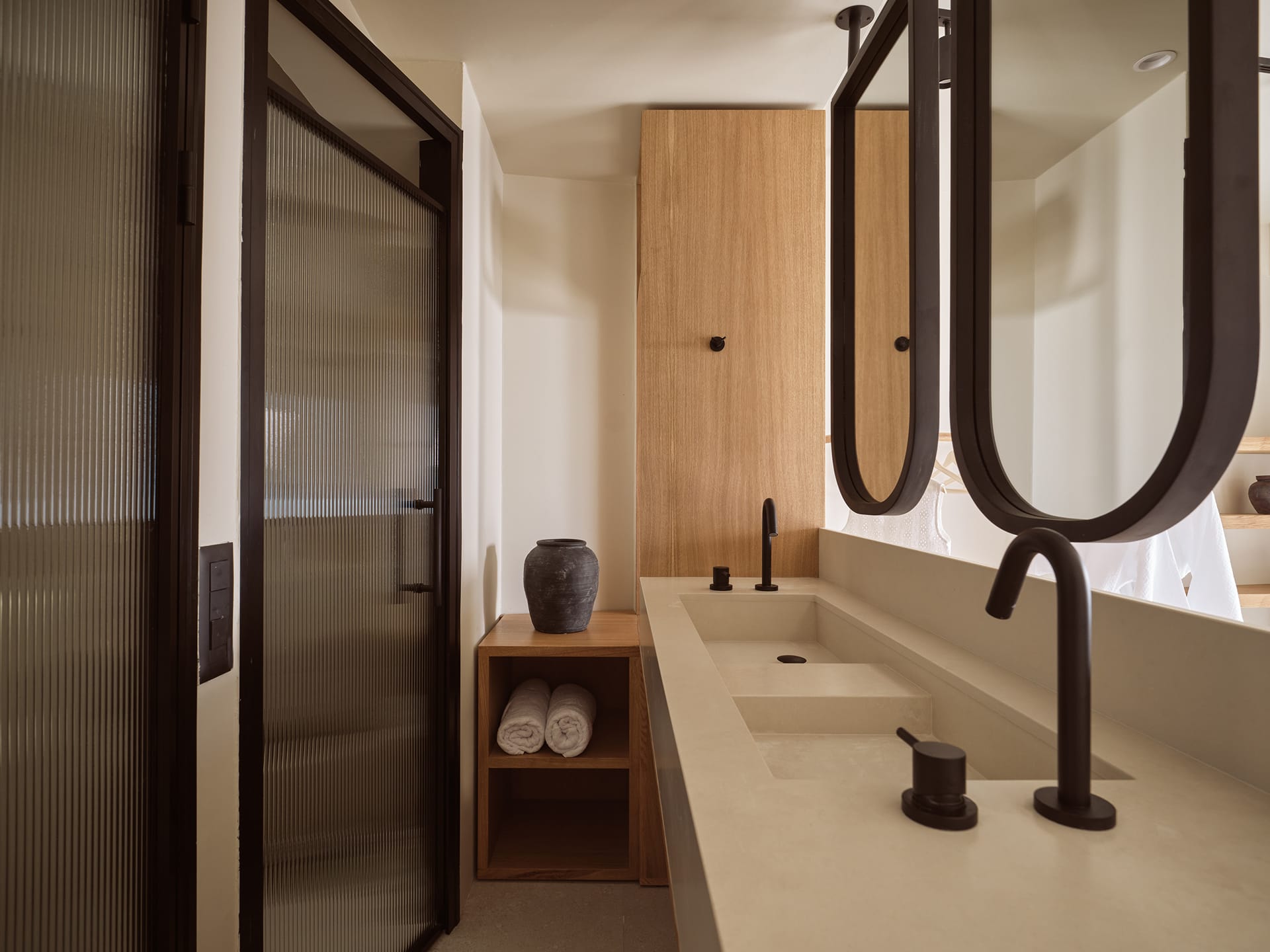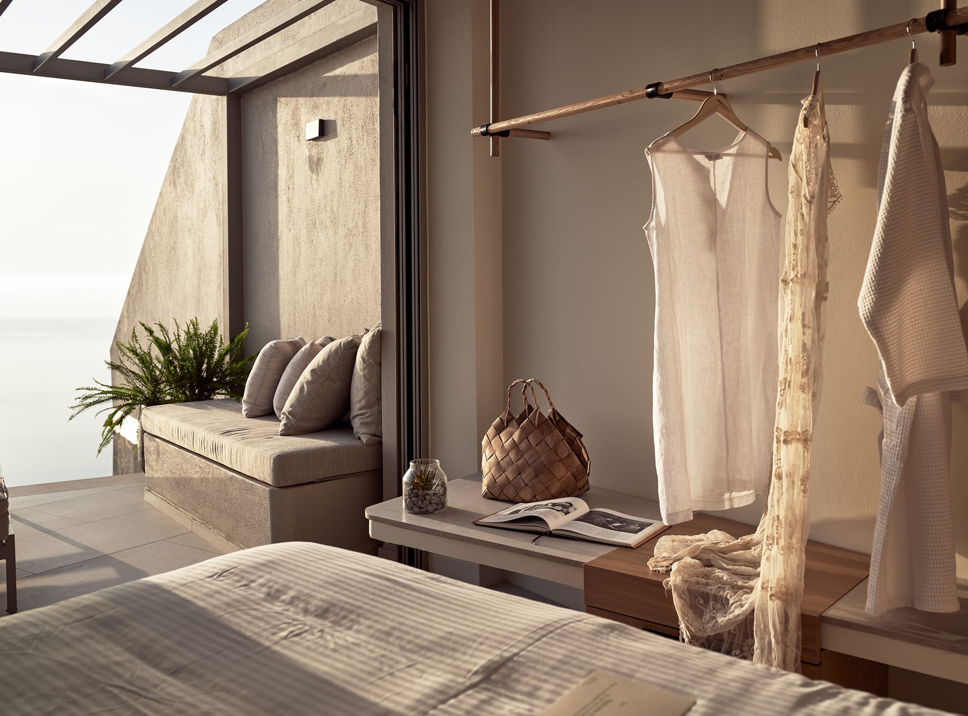 In the private patio, our visitors can enjoy the magnificent view of the Ionian Sea and the nearby island of Kefalonia, while relaxing in the Suite’s pool. Outside, one can find 4 sunbeds, a shower as well as a dinner table, all catered to create the ideal “outdoor-living” atmosphere.