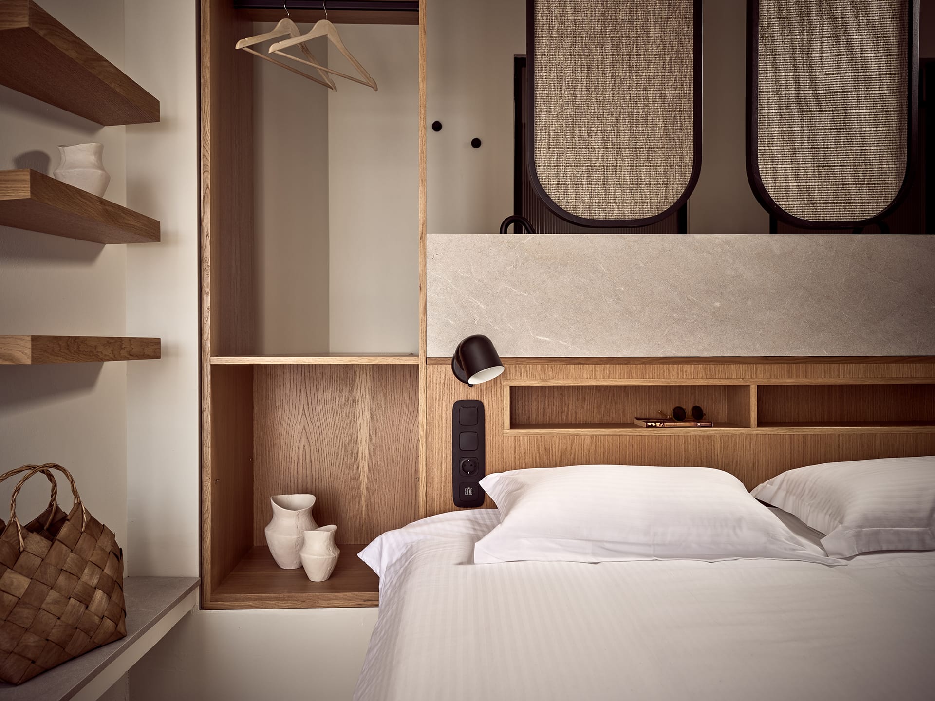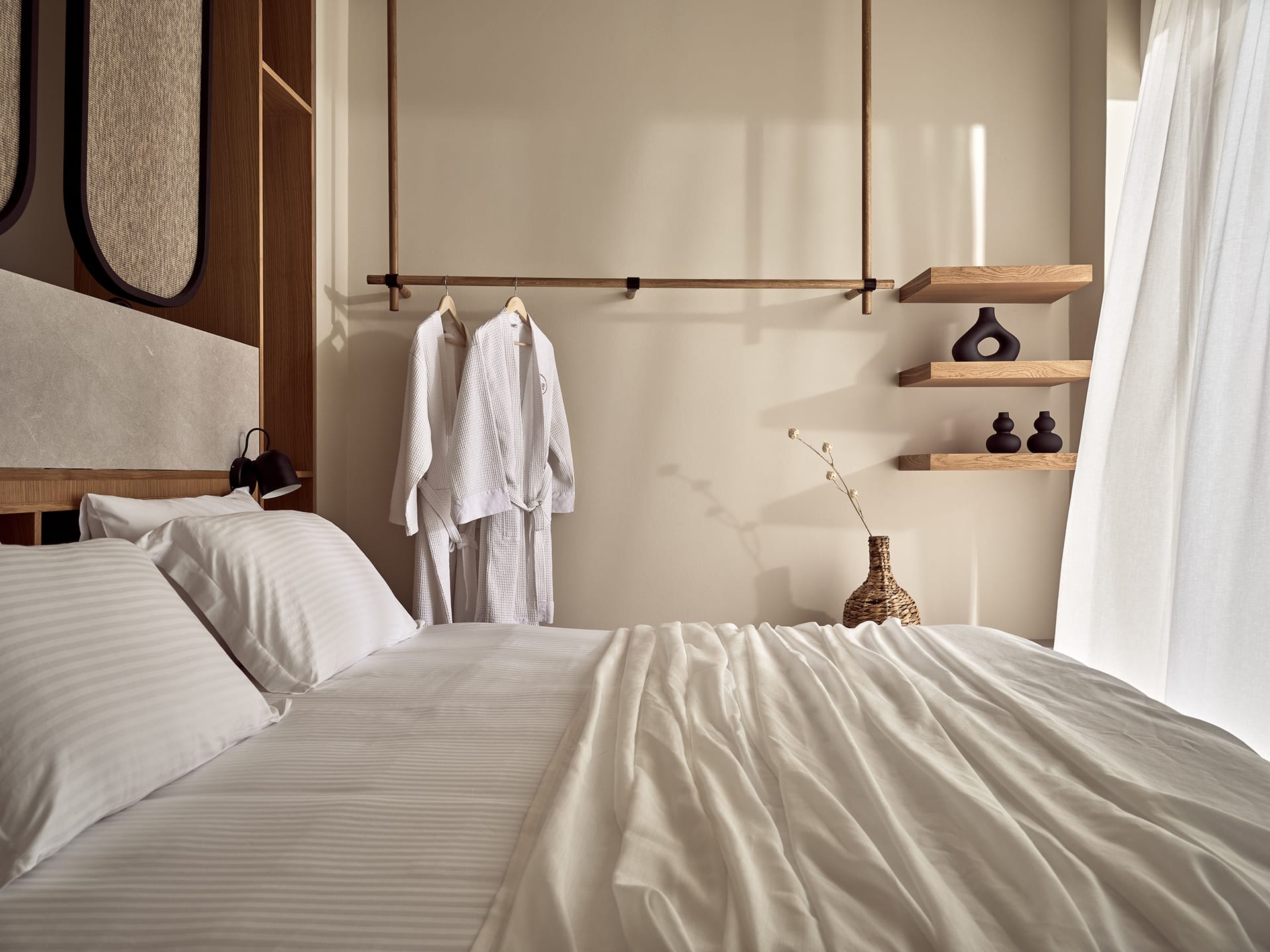 Just built in 2026, the Superior Suite: First Glow is about 60 m2 with a private patio of around 45 m2. Our Superior Suites can easily host 4 adults with children. They contain two bedrooms with king size beds, 2 separate bathrooms, as well as a crib upon request. The bedroom leads to a luxurious bathroom. From the living room, one has access to our work-from-anywhere station but also to a fully equipped kitchen.